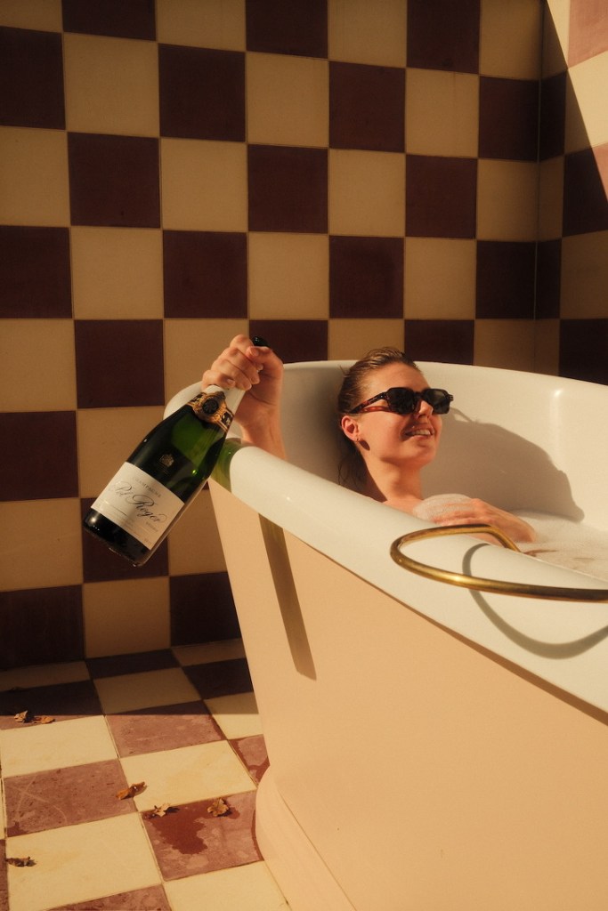 This photograph caught a rare moment of sunshine, just before a downpour. Champagne left over from Bobby’s 30th and an outdoor bathtub made for an unexpectedly cinematic moment.